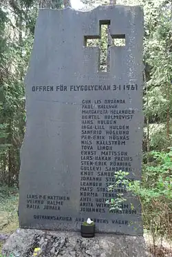 Aero Flight 311, often referred to as the Kvevlax air disaster, was a scheduled domestic passenger flight operated by Aero O/Y (now Finnair) between Kronoby and Vaasa in Finland. The aircraft, a Douglas DC-3, crashed in the municipality Kvevlax (Finnish: Koivulahti), nowadays part of Korsholm (Finnish: Mustasaari) on 3 January 1961, killing all twenty-five people on board. The disaster remains the deadliest aviation accident in Finnish history. The investigation revealed that both pilots were intoxicated and should not have been flying.[1]