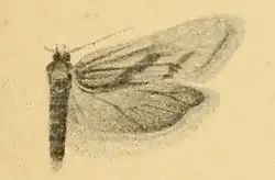 The wingspan is 20–23 millimetres (0.79–0.91 in). Adults are on wing in April and June.