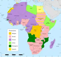 The Scramble for Africa[e] was the invasion, conquest, and colonisation of most of Africa by seven Western European powers driven by the Second Industrial Revolution during the late 19th century and early 20th century in the era of "New Imperialism": Belgium, France, Germany, United Kingdom, Italy, Portugal and Spain.