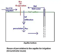 Example of an overall water balance An example is given of the reuse of groundwater for irrigation by pumped wells. The total irrigation and the infiltration are: