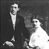 Harold McPherson followed her to bring her home but changed his mind after seeing her preaching. He joined her in evangelism, setting up tents for revival meetings and preaching.[24] The couple sold their house and lived out of their "gospel car". Despite his initial enthusiasm, Harold began leaving the crusade for long periods of time in the late 1910s. Initially attempting to launch his own career as a traveling evangelist, he eventually returned to Rhode Island and his secular job. The couple divorced in 1921.[25]