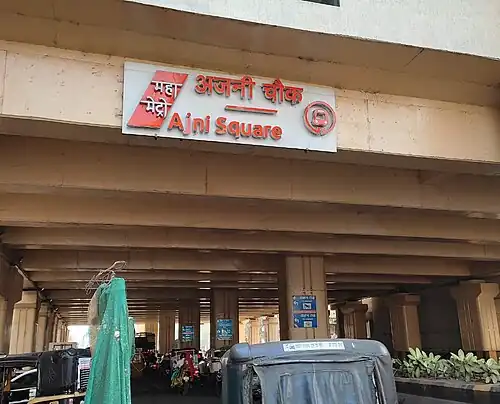 Ajni Square is an elevated metro station on the North-South corridor of the Orange Line of Nagpur Metro in the city of Nagpur, Maharashtra. It was opened on 22 October 2020.[1][2]