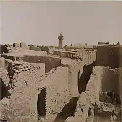 In late 1104, the Seljuk prince (emir) Suqman ibn Artuq died in the town on his way to Damascus after being summoned by the ruler of that city, Zahir ad-Din Tughtekin.[11] Arab geographer Yaqut al-Hamawi visited al-Qaryatayn in the early 13th century and described it as "a large village belonging to Hims, and on the desert road. It lies between Hims, Sukhnah, and Arak ... It is two marches from Tadmur [Palmyra]." He also noted its inhabitants were all Christians.[12] A 10,000-member brigade of the Mongol army raided the town and the surrounding region in 1260. Later that year, a Mamluk force led by Emir Salar pursued a retreating Mongol force back to al-Qaryatayn.[13]