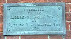 Aldershot observatory is a circular red-brick building with a domed roof standing on Queens Avenue in Aldershot Military Town[1] near Aldershot, England, home to the British Army since circa 1854. Inside is an 8-inch (203 mm) refracting telescope on a German-type equatorial mount with a clockwork drive which will run for about 2 hours without rewinding, this has a facility to vary the drive rate. The telescope and observatory building were a gift from aviation pioneer Patrick Young Alexander to the British Army, a fact which is recorded by a plaque near the observatory door. It reads: ‘Presented to the Aldershot Army Corps by Patrick Y Alexander Esq 1906’.
