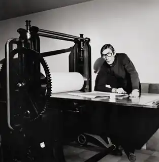 Aldo Crommelynck (26 December 1931 – 22 December 2008) was a Belgian master printmaker who made intaglio prints in collaboration with many important European and American artists of the 20th century.[1][2] At the time of his death, The Guardian termed Crommelynck the 'pre-eminent' and 'the most celebrated printmaker of the second half of the 20th century.'[3]