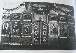For the first two months, the internees attended services at St. Alexander Nevsky Church in Aleksandrów Kujawski. During Christmas celebrations in 1921 (January 7 in the Julian calendar), they held a ceremonial procession from the church to the camp, 1.5 km away. The Polish authorities considered this a political demonstration and prohibited further attendance at the church. As a result, the internees set up a chapel in one of the barracks, featuring an iconostasis designed by W. Bokit'ko and constructed by F. Melanuk and M. Krushelnytsky. The Union of Ukrainian Emigrant Women provided embroidered processional banners for the chapel.[39] After the camp's closure, the chapel's furnishings were transferred to the camp in Szczypiorno.[40]