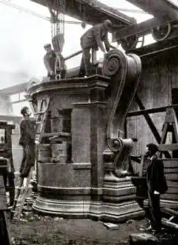 Finishing of the granite base to the monument to Charles Garnier at Alexander MacDonald's yard in Aberdeen prior to shipping to Paris