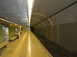 Opened in 1974, the station is currently served by L4.[1] It has three entrances, one on the square itself, a second one next to Parc de les Aigües and another one on Carrer Lepant. As of 2007 it is the only metro service in the surrounding area (Can Baró), and will be until Sanllehy metro station on L9 and L10 is complete.