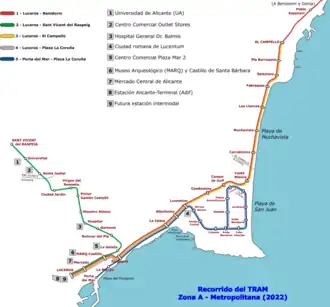 | Alicante Metropolitan TRAM TRAM Metropolità d'Alacant (Valencian) TRAM Metropolitano de Alicante (Spanish) | |||
