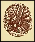Jordan joined artists Neville Barnett, Roy Davies, Adrian Feint, Lionel Lindsay and Philip Litchfield in a revival of the bookplate before World War Two.[18] His Ex Libris bookplates often employ intricate rebuses to characterise their owners,[19] and such is the case with that he created for World War Two hero Russell Francis Wright MBE (1920–2012).[9][20][21]