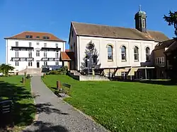 Throughout the 19th century, Oelenberg Abbey in Haut-Rhin was a double monastery with masculine and feminine communities. These two communities were founded in 1815 and 1825 by monks and nuns who fled from France to Kleinburlo and Rosenthal, Westphalia during the Revolutionary and Imperial periods. In 1825, the 34 nuns[2] settled in the monastery that the monks built when they came back from exile.[3]