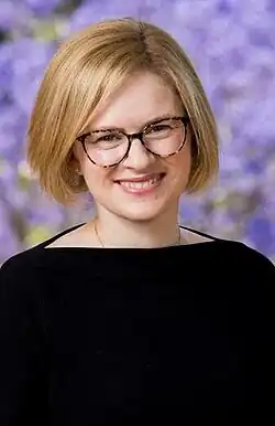 On 22 December 2020, Stoker was appointed as the Assistant Minister to the Attorney-General.[25] On 30 March 2021, she was appointed to additional positions of Assistant Minister for Women and Assistant Minister for Industrial Relations.[1] In reference to her elevation Prime Minister Morrison said: "she's one of the most bright and intelligent people to come into this Parliament and I was thrilled to be able to bring her into the Executive so early in her Parliamentary career".[26] Grace Tame, named 2021 Australian of the Year for her advocacy for survivors of sexual assault, criticised Morrison's appointment of Stoker to Assistant Minister for Women saying he had exhibited either very poor judgment, or cultural calculation in elevating a conservative who had "aimed at falsifying all counts of sexual abuse on campuses across the nation".[27] Stoker said Tame's comments were "passionate but not informed", adding the comments did not correspond with Stoker's long history of work in the area of women's safety.[28][29]
