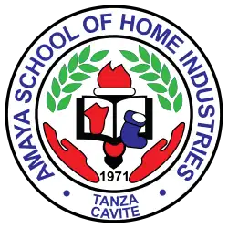 Amaya School of Home Industries was created under Republic Act No. 3987[1] sponsored by Cong. Justiniano Montano, a native of Barangay Amaya, Tanza, Cavite. This bill was approved by Congress on June 18, 1964, and it was finally opened in June 1971 with the amount of P70,000 for its initial operation. It was disseminated by a Division Memo No. 21, dated May 11, 1971. Awaiting the completion of documents and construction of buildings, the students were temporarily housed at Amaya Elementary School[2] under the principalship of Mrs. Corazon Arayata. The school's former name was Amaya Community High School were two batches graduated. The last two levels, 1st and 2nd year were transferred to the new site after the completion of the 2-storey room. On April 3, 1972, in preparation for the opening of classes SY 1972–1973, the Amaya School of Home Industries was born. It offered two programs: the Vocational secondary school program and Out-of-School Youth and Adult Education program.[3] The Vocational Secondary Program started with an initial enrolment of 133 students who were handled by seven teachers while the Out-of-School Youth had ninety (90) OSY and seven adults enrolled in Home Industries in taking up dressmaking, tailoring, shell craft and woodcraft handled by local technicians, sewers and instructors hired for three six months. The administrative and supervisory personnel were composed of the Home Industries training supervisor, accounting clerk, storekeeper, and janitor