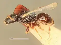 - ^ Sann, M.; Niehuis, O.; Peters, R. S.; Mayer, C.; Kozlov, A.; Podsiadlowski, L.; Bank, S.; Meusemann, K.; Misof, B.; Bleidorn, C.; Ohl, M. (2018). "Phylogenomic analysis of Apoidea sheds new light on the sister group of bees". BMC Evolutionary Biology. 18 (71): 71. Bibcode:2018BMCEE..18...71S. doi:10.1186/s12862-018-1155-8. PMC 5960199. PMID 29776336.