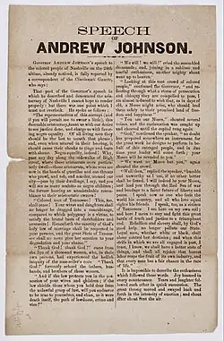 - ^ ""The Moses of the Colored Men" Speech - October 24, 1864". Andrew Johnson National Historic Site, Greeneville, Tenn. U.S. National Park Service. April 14, 2015. Archived from the original on 2023-03-30. Retrieved 2023-07-29.