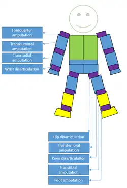 - ^ a b "Limb Loss Definitions | Amputee Coalition". www.amputee-coalition.org. February 2008. Archived from the original on 2016-07-18. Retrieved 2016-07-25.
