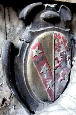 - ^ Gervase Clifton, 1st Baron Clifton had one son who predeceased him without children, when his heir became his daughter Katherine Clifton, suo jure 2nd Baroness Clifton, wife of Esmé Stewart, 3rd Duke of Lennox. Gervase's sisters including Elizabeth Bampfield thus became heraldic heiresses, which enabled the Bampfield family subsequently to quarter the arms of Clifton, as is visible on various hatchments in Poltimore Church(Summers, Peter & Titterton, John, (eds.), Hatchments in Britain, Vol.7: Cornwall, Devon, Dorset, Gloucestershire, Hampshire, Isle of Wight and Somerset; Phillimore Press, Chichester, Sussex, 1988, pp. 29–30)
