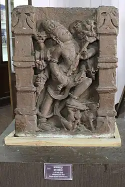 His story finds mention in various Hindu texts, including the Matsya Purāṇa, the Kūrma Purāṇa, the Liṅga Purāṇa, the Padma Purana, and the Shiva Purana.[3] He is believed to have one thousand heads, and one thousand arms, and also having two thousand eyes. In another version, he has two thousand arms, and two thousand legs.[4] In some versions of his story, Andhaka is described as a son of Shiva and Parvati.[5][6]