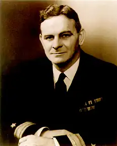 McKee was assigned to Portsmouth Naval Shipyard following graduation, and then transferred to the New London, Connecticut, submarine base in 1924.[3] McKee became ship type assistant of submarine design for the Navy Bureau of Construction and Repair in Washington from 1926 to 1930, where he directed the design of USS Dolphin from which evolved the successful fleet submarines of World War II.[4] McKee served as new construction superintendent at the Philadelphia Naval Shipyard from 1930 to 1934 and as hull superintendent at the Mare Island Naval Shipyard from 1934 to 1938.[5] In the latter post, he oversaw introduction of the all-welded pressure hull techniques pioneered while building USS Sturgeon.[5]