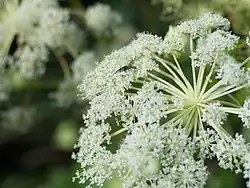 Angelica dahurica, commonly known as Dahurian angelica,[2] is a widely grown species of angelica native to Siberia, Russia Far East, Mongolia, Northeastern China, Japan, Korea, and Taiwan.[3] This species tend to grow near river banks, along streams and among rocky shrubs.[4] The root of the plant is widely used for its medicinal properties and is known to contain furanocoumarins and angelicotoxin.[5]