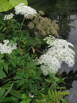 Angelica genuflexa is a species of angelica known as kneeling angelica. It is native to northwestern North America from Alaska to northern California, where it grows in moist areas in coniferous forests such as streambanks. This is a taprooted perennial herb producing an erect, hollow stem to heights between 1 and 2 meters. The leaves are up to 80 centimeters long and are made up of many dissected, toothed leaflets, each up to 10 centimeters long. The inflorescence is a compound umbel of up to 50 rays bearing clusters of small flowers.