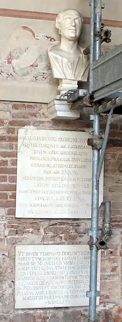 Angelo Fabroni was born at Marradi in Tuscany to Alessandro and Giacinta Fabroni, of a banking family formerly of great fortune.[1] After studying with tutors and at Faenza, in 1750 he entered the Collegio Bandinelli in Rome, founded for the education of young Tuscans. His father having died that year, Piero Francesco Foggini took an interest in the young man's education. Fabroni became a priest.