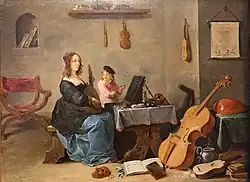 ![]() "Portrait of Anna Brueghel and her son David Teniers III" (circa 1645) by David Teniers II | |