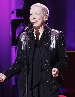Her fifth album, and first with new record label Island and Decca, A Christmas Cornucopia was released in November 2010, and in September 2014, released her sixth solo album Nostalgia.[5] Her version of "I Put a Spell on You" was a moderate commercial success attributed by its inclusion in the 2015 film Fifty Shades of Grey, reaching the US Billboard Hot 100, as well as the singles charts in her native Scotland, and the UK Singles Charts.[6] Lennox has earned the distinction of 'most successful female British artist in UK music history' due to her global commercial success since the 1980s. Including her work with Eurythmics, Lennox is one of the world's best-selling music artists, having sold over 80 million records worldwide.[7]