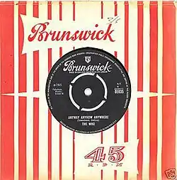 "Anyway, Anyhow, Anywhere" was released on 21 May 1965.[5] The release coincided with an appearance on Ready Steady Go! by the group, in which they perform this and "Shout and Shimmy".[8] "Anyway, Anyhow, Anywhere" fitted the mood of Ready Steady Go! so well that the show adapted it as their intro for a while.[12] In the US, the feedback present in the recording startled Decca Records, who believed they'd received a faulty tape of the song.[13] The song was released on 5 June 1965 in the US.[14]