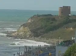 Along the coast are numerous remains of Roman villas. One, the Domus Neroniana, has been identified as a residence of Nero (the villa was subsequently enlarged by Domitian, Hadrian and Septimius Severus);[1] he and Caligula were born in Antium and, according to Giuseppe Lugli,[18] right there ("one or more villas of the Julia gens"). There are also the ruins of the villa of Cicero.[19]