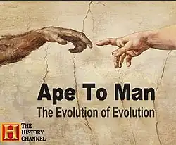 Ape to Man: Theory of evolution is a dramatised documentary on the scientific community's attempts to find evidence of the missing link[2] between early hominids and anatomically modern humans.[1] This documentary follows a timeline journey of discoveries from 1856, around the time of the publication of Charles Darwin's On the Origin of Species, to 2005, analysing the impact each discovery had on the theories of human evolution.[3]