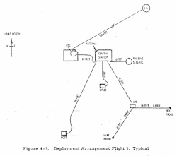 ![]() | This photo shows Jim Lovell training for Apollo 13. He is currently deploying a mock-up of the Central Station. The Station was spring-loaded. After releasing Boyd bolts, the top of the Station would spring up, deploying it. Note the various locations on top of it which held some of the experiments before deployment. They were also held down with Boyd bolts that were released with a UHT.[4] |