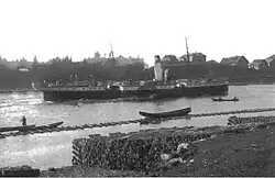 Apostol Paviel entered service in 1906. The ship's name referred to a popular saint in northern Russia. Additionally, the same name was given to the first commercial ship built in Russia according to Western standards. The first captain of the ship was Nikolai Varzugin. The ship operated on Lake Onega and nearby waterways on regular routes, as well as carrying pilgrims to the island of Valaam to visit the monastery there.[6] It mainly wintered on the Svir river, where the company had workshops. During this time, the entire crew except for the engineers was released to go home, while the engineers performed minor repairs. A major overhaul in St. Petersburg was necessary as early as 1906 due to the crew's unfamiliarity with the ship's modern mechanisms.[7]