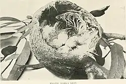 This collection consists of 2,772 images taken by Archibald James Campbell. These are made up of a combination of black and white prints and glass negatives. Many of the images of birds and nests were used by Campbell in his book Nests and Eggs of Australian Birds, including the Geographical Distribution of the Species and Popular Observations Thereon, published in 1900. There is also a significant number of images taken by Campbell on his various field trips around Australia with groups such as the Ornithologists Union, Victorian Field Naturalists, The Working Men's College Photographic Club and his family. - Museum Victoria.[11]