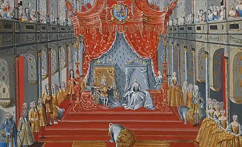 After 1661, when absolute monarchy was introduced, the old nobility was gradually replaced by a new. This consisted mainly of merchants and officials who had recently been ennobled but also of foreign nobles who were naturalised. Dominant elements in the new nobility were the office nobility (noble status by holding high civilian or military offices) and—especially prominent in the 18th century—the letter nobility (noble status via letters patent in return for military or artistic achievements or monetary donations). Based on the 1665 Lex Regia, which stated that the king was to be revered and considered the most perfect and supreme person on the Earth by all his subjects, standing above all human laws and having no judge above his person, [...] except God alone, the king had his hands free to develop a new and loyal aristocracy to honour his absolute reign. The nobilities in Denmark and Norway could, likewise, bask in the glory of one of the most monarchial states in Europe. The title of count was introduced in 1671, and in 1709 and 1710, two marquisates (the only ones in Scandinavia) were created. Additionally, hundreds of families were ennobled, i.e., without titles. Demonstrating his omnipotence, the monarch could even revert noble status ab initio, as if ennoblement had never happened, and elevate dead humans to the estate of nobles. A rich aristocratic culture developed during this epoch, for example family names like Gyldenpalm (lit. 'Golden Palm'), Svanenhielm (lit. 'Swan Helm'), and Tordenskiold (lit. 'Thunder Shield'), many of them containing particles like French de and German von. Likewise, excessive creation of coats of arms boosted heraldic culture and praxis, including visual arts.