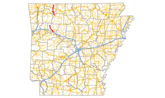 - ^ Transportation Planning and Policy Division (September 17, 2021). State Highway Route and Section Map, Carroll County, Arkansas (PDF) (Map). 1:62,500. Little Rock: Arkansas Department of Transportation. Retrieved April 14, 2022.