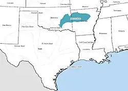 The Arkoma Basin is a peripheral foreland basin that extends from central west Arkansas to south eastern Oklahoma. The basin lies in between the Ozark Uplift and Oklahoma Platform to the north and Ouachita Mountains to the south and with an area of approximately 33,800 mi2. Along the southern edge of the basin, the Choctaw Fault is the boundary that separates the mountains from the basin itself. This basin is one of seven that lie along the front of the Ouachita and Appalachian mountain systems.[1] This basin is Oklahoma's fourth largest in terms of natural gas production. Oil has been extracted locally, but not on a commercial scale. Coal was the first natural resource used commercially within the basin. Surface mapping of coal seams in the early part of the 20th century lead to the discovery of sub-surface features that indicated the presence of natural gas. Mansfield, Arkansas was the site of the first natural gas discovery in 1902.[2]