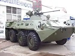 The number of vehicles is around 2,000, the number of tanks is around 700 and the number of artillery pieces is around 560.[22] Turkmen ground forces equipment includes 702 T-72,[23] and 10 T-90, ordered in 2009 for approximately $30 million.[24][25] AIFV / APC include BTR-60/BTR-70/BTR-80 - 829,[23] BMP-1/BMP-2 - 930,[23] BRM-1 12, and BRDM-2 - 170. In 2021 Turkmenistan is to receive batch of Lazar 3 8x8 armored vehicle from Serbia.[26]