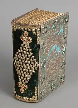 Artist Astuatsatur Shahamir Year c.  13th-17th centuryMedium Ink and tempera on parchment with a cover of silver, gilt, jewels, enamel Dimensions 25.4 cm × 17.1 cm (10.0 in × 6.7 in) Location Metropolitan Museum of Art , New York