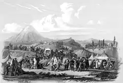 In 1829, Baltic German explorer Friedrich Parrot of the University of Dorpat (Tartu) traveled to the oblast as part of his expedition to climb Mount Ararat. Accompanied by Armenian writer Khachatur Abovian and four others, Parrot made the first ascent of Ararat in recorded history from the Armenian monastery of St. Hakob in Akhuri (modern Yenidoğan).[9]