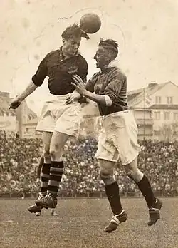 ![]() AIK-Birmingham City FC, 1-2. Arne Andersson dueling with Wilson Jones. Aftonbladet's picture of the year in 1946. | |||