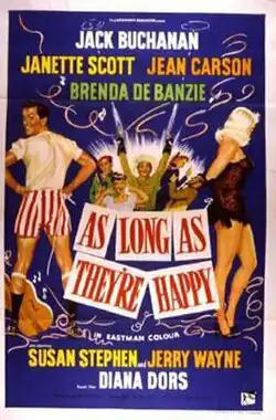 As Long as They're Happy is a 1955 British musical comedy film directed by J. Lee Thompson and starring Jack Buchanan, Susan Stephen and Diana Dors.[1] It was written by Alan Melville based on the 1953 play of the same title by Vernon Sylvaine. It was shot in Eastmancolor at Pinewood Studios near London with sets designed by the art director Michael Stringer.