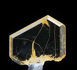 Asbecasite is a calcium titanium beryllium arsenite silicate mineral with the chemical formula Ca3(Ti,Sn4+)Be2(AsO3)6(SiO4)2. Its type locality is the Binn valley in Switzerland.[1]