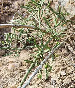 It often forms rounded gray-green galls on its stem, the result of parasitism by the fly Asparagobius braunsi.