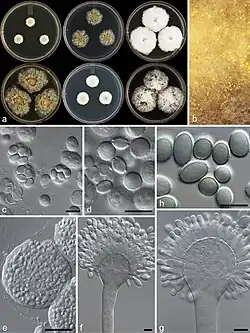 - ^ a b c d Chen, A.J.; Hubka, V.; Frisvad, J.C.; Visagie, C.M.; Houbraken, J.; Meijer, M.; Varga, J.; Demirel, R.; Jurjevic, Z.; Kubátová, A.; Sklenár, F.; Zhou, Y.G.; Samson, R.A. (2017). "Polyphasic taxonomy of Aspergillus section Aspergillus (formerly Eurotium), and its occurrence in indoor environments and food". Studies in Mycology. 88: 37–135. doi:10.1016/j.simyco.2017.07.001. PMC 5573881. PMID 28860671.