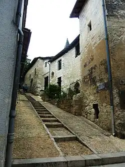 On the hill on top of the white chalk cliffs the lords of Aubeterre erected a castle above the monolithic Church of Saint-Jean in the 12th century. Aubeterre was then a Viscounty which passed by marriage to Pierre II from the house of Castillon.[13]