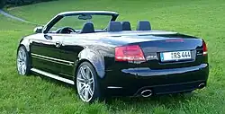 The B7 RS 4 is an almost complete departure from previous Audi "RS" cars, as it was initially available as a four-door five-seat saloon/sedan;[7] with a five-door five-seat Avant, and two-door four-seat Cabriolet versions arriving later. Only the Audi RS 6 had taken this similar route (saloon and Avant) before, unlike the previous RS 4 and RS2, which were available exclusively as Avants.