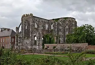 French revolutionary troops burned the abbey in 1794, only a short time after it had been rebuilt on a larger scale. The library, which contained 40,000 books and 5,000 manuscripts, was also destroyed.[1] In 1859 the last monk died; the Monastery was abandoned and the abbot's residence turned into a hospice.[2]