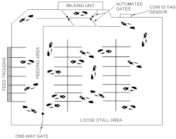 The barn may be arranged such that access to the main feeding area can only be obtained by passing the milking unit. This layout is referred to as guided cow traffic. Alternatively, the barn may be set up such that the cow always has access to feed, water, and a comfortable place to lie down, and is only motivated to visit the milking system by the palatable feed available there. This is referred to as free cow traffic.