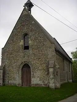 The Chapel of Saint-Jean stands on a hill 2 kilometres south of the Church of Auvillars. It dates to the last Flamboyant Gothic period and is about 30 feet long by 15 wide. The western gate, flanked by two buttresses, finishes with a very sharp curve which supports a very steep roof. The ogival doorway is decorated with prismatic mouldings and surmounted by a window from the same era. In front of the chapel there are two large poplar trees at the entrance.
